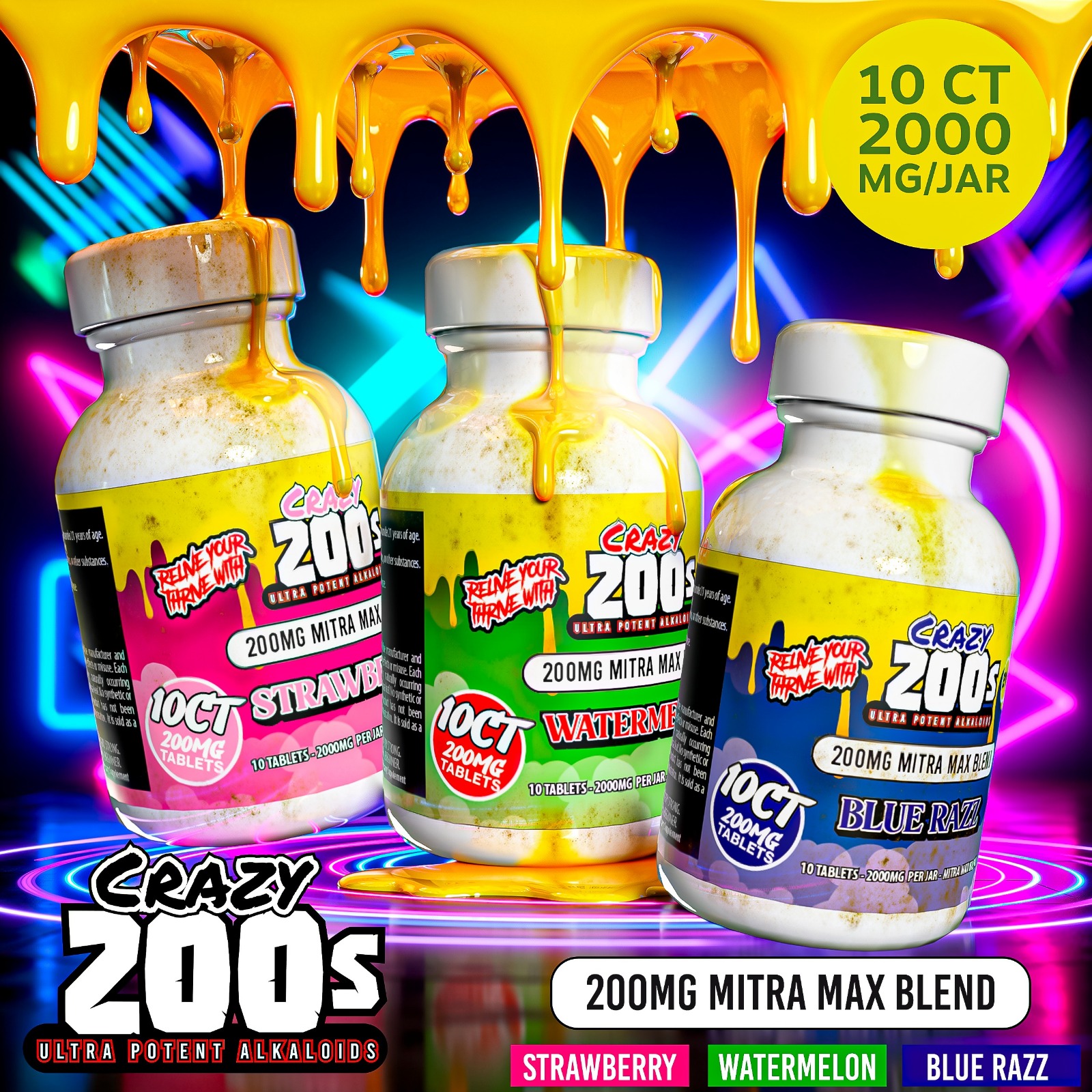 CRAZY 200's MITRAMAX BLEND 10CT | 200MG TABLET PER JAR