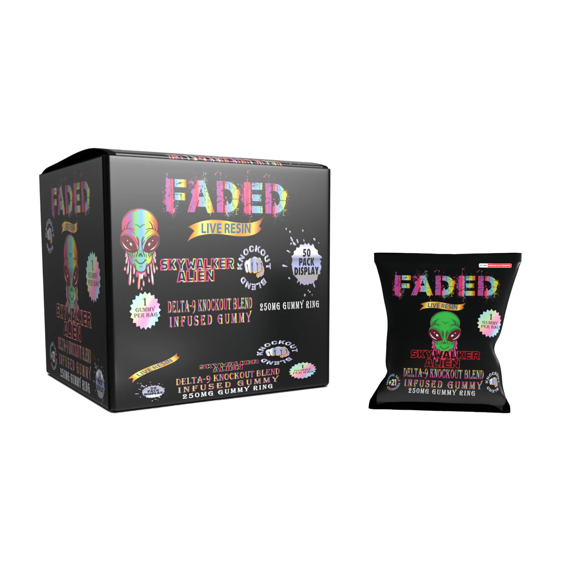 FADED GUMMIES LIVE RESIN 500MG | D9 KNOCK OUT BLEND D8+THCP | 150CT DISPLAY