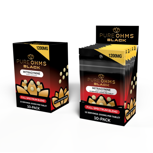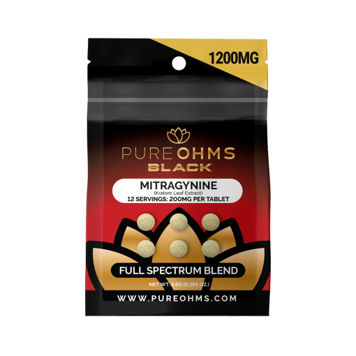 PURE OHMS BLACK MITRAGYNINE KRATOM 200MG PER TABLET | 6CT/10PACK