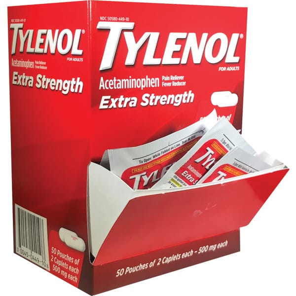 TYLENOL EXTRA STRENGTH- 50 POUCHES OF 2CAPLETS EACH